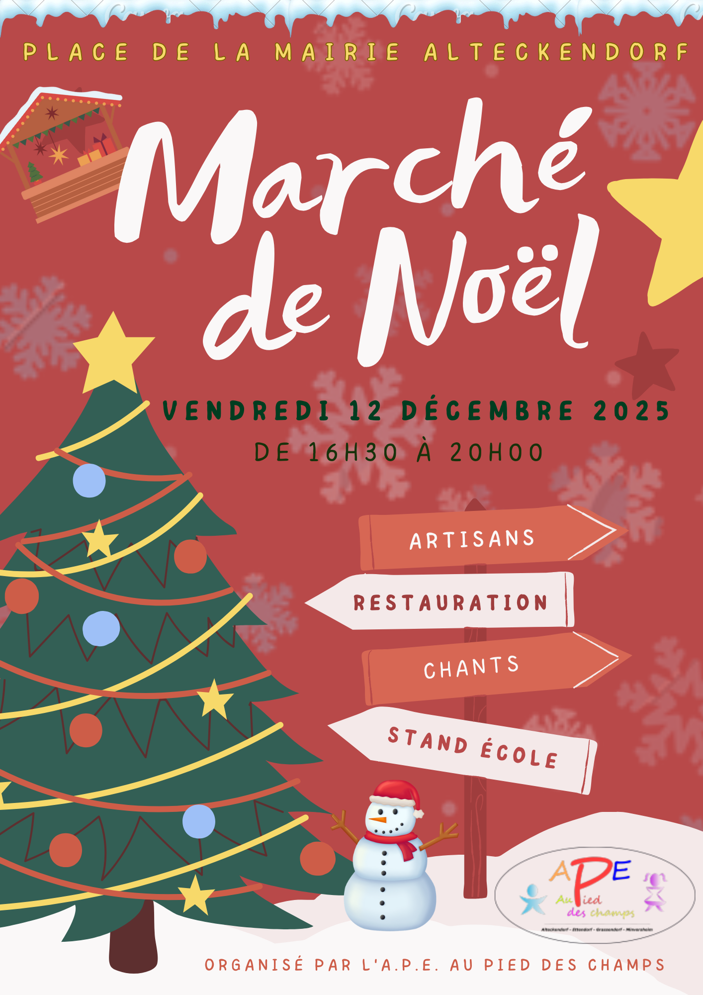 Venez découvrir le Marché de Noël d'Alteckendorf organisé par l'A.P.E. Au Pied des Champs !